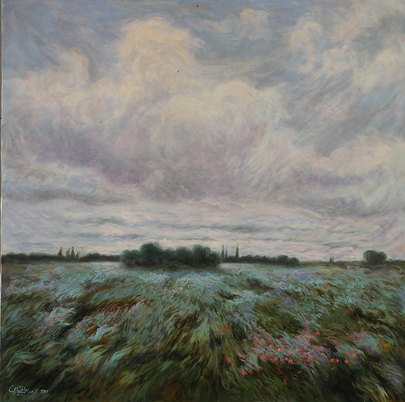 رنگهایی که شاید بر طبق واقعیت نقاشی نشده باشد. ترکیب بندهایی که ما را به یاد عالم مثال گونه از طبیعت میاندازد، با خط افقهایی که ما را تا ژرفایی تابلو میبرد.گاهی رنگها با اختلاف سایه و روشن شدید، نقاشی میشوند و زمانی پرده به پرده خاکستریهای رنگی ترکیبی جذاب از رویا را به هم میبافند.