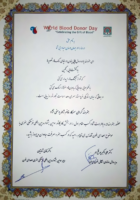 معرفی مقام اول جشنواره بین‌المللی اهدای خون؛
